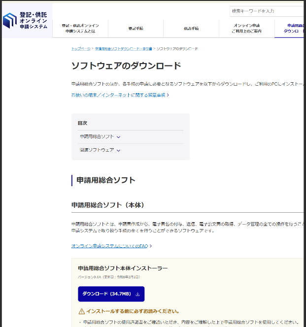 まず↓こちらのページから、申請システムをダウンロードしましょう