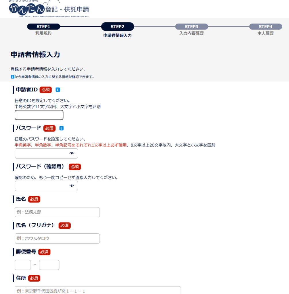 申請者情報を入力し、IDとパスワードを登録しましょう。