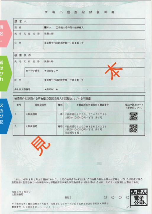 また、同名異人の不動産が抽出される可能性もあるため、内容の確認は必須です。