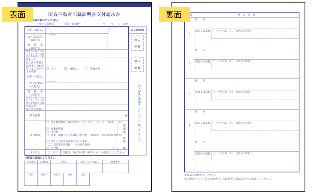 裏面には検索条件とする住所、氏名を記載しましょう。