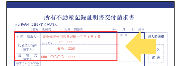 請求人である本人の住所、氏名、連絡先を記載しましょう