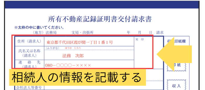 請求人欄には相続人の住所、氏名、連絡先を記載しましょう