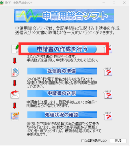 ダウンロードがおわったら、『申請用総合ソフト』を立ち上げましょう。
