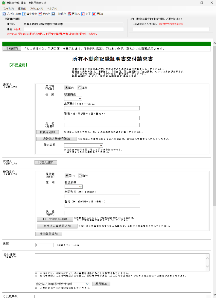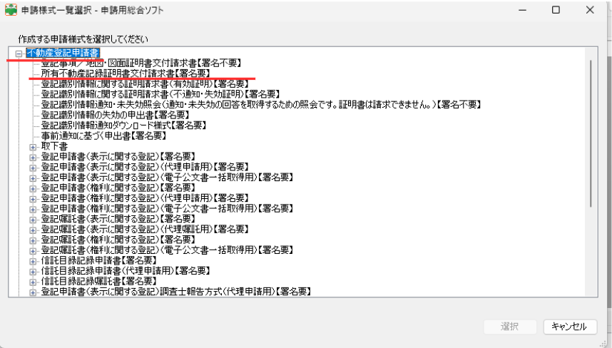 不動産登記申請書をクリックして、所有不動産記録証明書交付請求書【署名要】を選択しましょう。