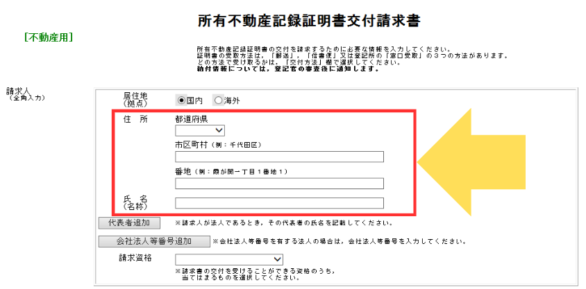 所有者本人ではなく、相続人が申請する場合の記載方法を説明します。