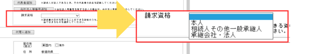 請求資格には本人もしくは相続人その他一般承継人から選択しましょう。