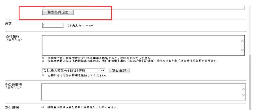 検索条件を追加したい場合には検索条件追加をクリックして入力しましょう。
