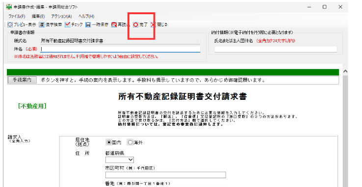 ここまでの入力が完了したら、一番上にもどり、完了をクリックしましょう。