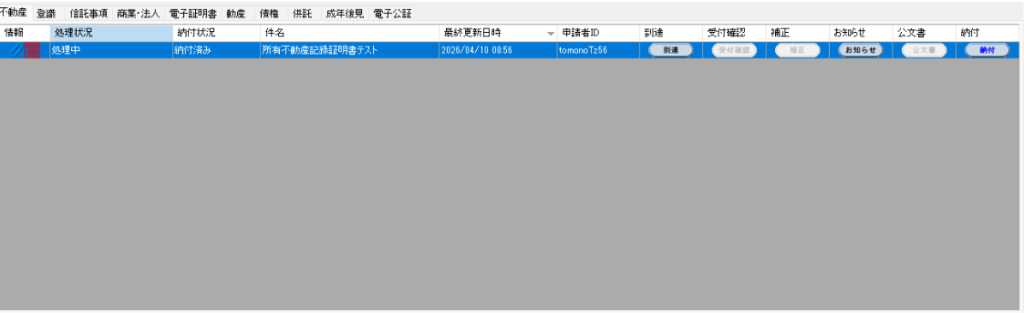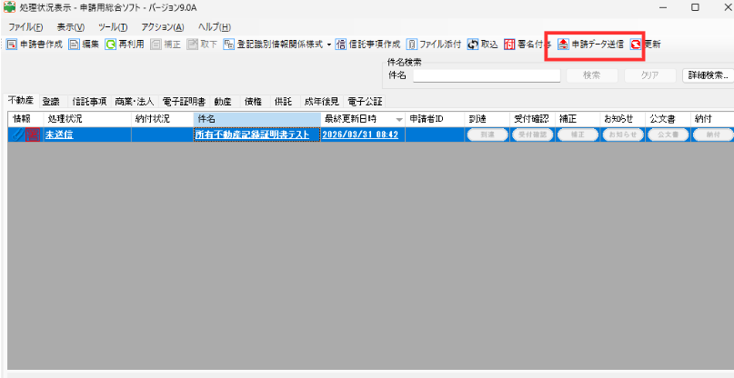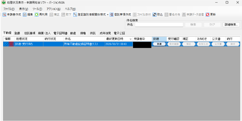 送信が完了すると、処理状況が「到達・受付待ち」となります。