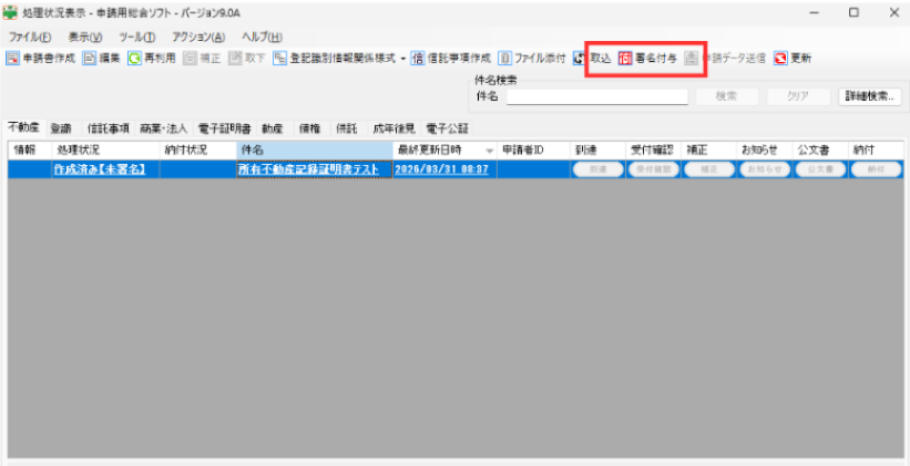 添付が終わったら、署名付与をクリックして電子署名をおこないます。