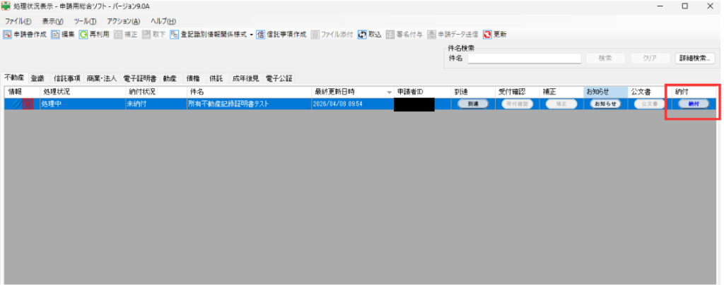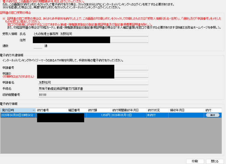 法務局の確認が完了すると、手数料の納付情報が発行されます。